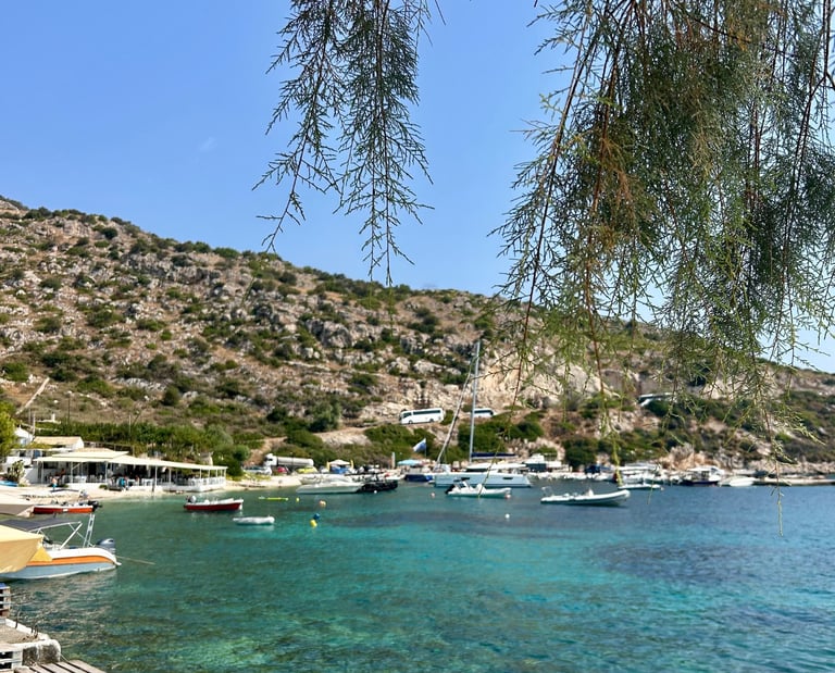 Lunch/Afternoon: Porto Limnionas: Head to this dramatic rocky fjord on the west coast. It's a spectacular swimming hole with clear water and cliff-side sunbeds.